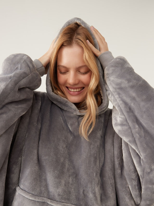 C’est là qu’est née l’idée de CosyHood™ : un vêtement pensé comme une couverture, mais conçu avec le confort et le style d’un hoodie.